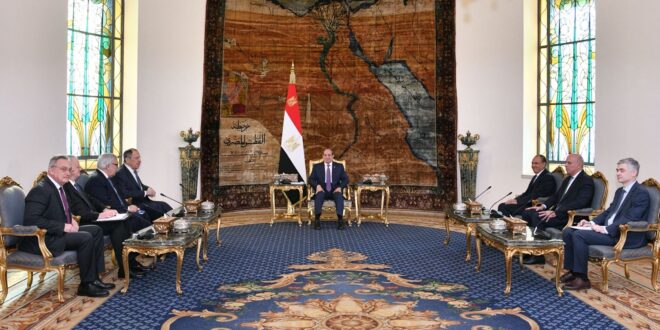 استقبل الرئيس عبد الفتاح السيسي، اليوم، السبت “سيرجي لافروف”، وزير خارجية روسيا الاتحادية، وذلك بحضور الدكتور بدر عبد العاطي، وزير الخارجية والهجرة وشئون المصريين في الخارج، ومن الجانب الروسي سيرجي فيرشينين، نائب وزير الخارجية، وجيورجي بوريسينكو، سفير روسيا الاتحادية بالقاهرة، والسيد اليكساندر كينشاك، مدير إدارة الشرق الأوسط وشمال أفريقيا بوزارة الخارجية، وميخائيل دجيرغينيا، مدير القسم في إدارة الشرق الأوسط وشمال أفريقيا بوزارة الخارجية.