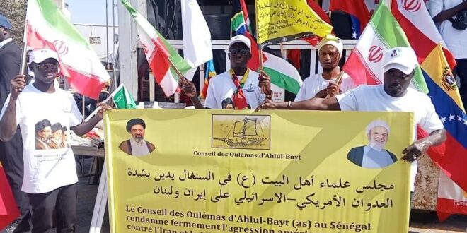 اقامت مجموعات اجتماعية وقفة احتجاجية في العاصمة دكار بالسنغال تنديدا بالعدوان على الجمهورية الاسلامية الايرانية.