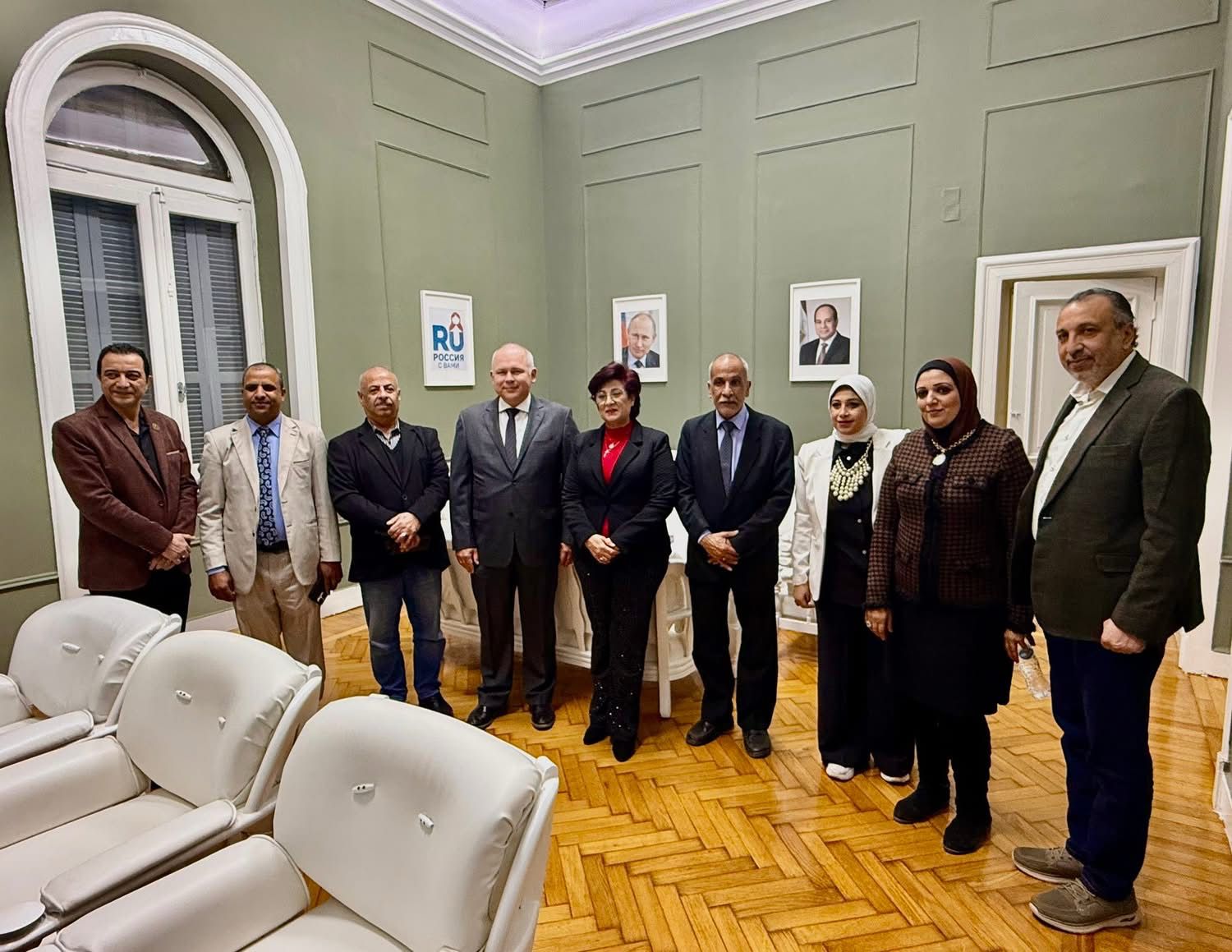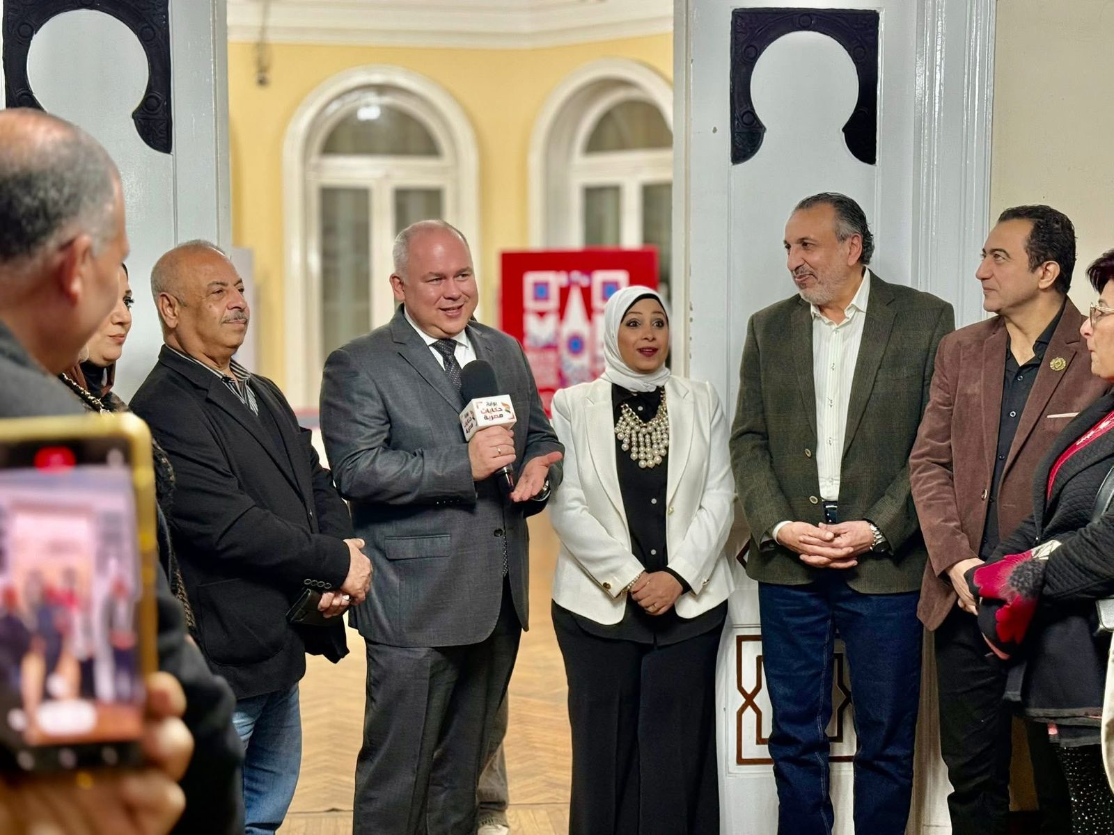 جاء المعرض بحضور فاديم زايتشيكوف مدير المراكز الثقافية الروسية في مصر، د. وافي الشرقاوي موجه عام التربية الفنية بمديرية التربية والتعليم بالقليوبية، د. محمد اسحق عميد كلية التربية الفنية بجامعة حلوان سابقًا، د. كرم مسعد رئيس قسم الحُلي والمعادن بكلية التربية الفنية، الأستاذ إبراهيم حسين مدير مدرسة حسن أبو بكر الرسمية للغات، والأستاذة ميرفت سيد مدير مدرسة أسماء الإعدادية بنات، إلى جانب شريف جاد مدير النشاط الثقافي بالبيت الروسي.