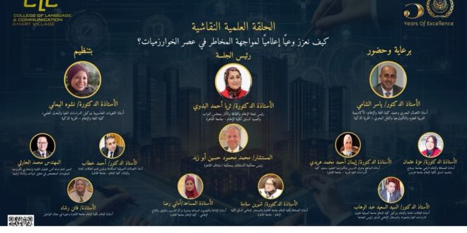 تواصل الأكاديمية العربية للعلوم والتكنولوجيا والنقل البحري، ممثلة في كلية اللغة والإعلام بفرع القرية الذكية، جهودها العلمية بتنظيم مائدة مستديرة بعنوان: “كيف نطور وعيًا إعلاميًا فعالًا لمواجهة المخاطر في عصر الخوارزميات؟”، وذلك يوم 15 أبريل 2026