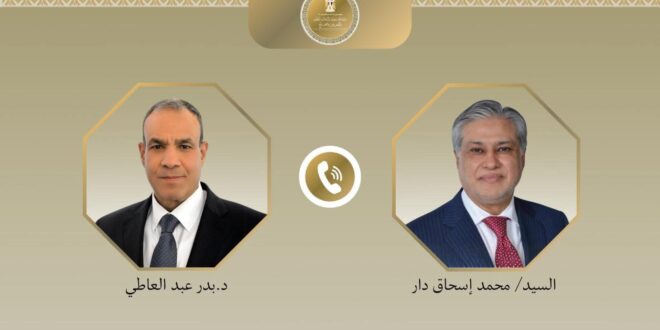 جرى اتصال هاتفى مساء اليوم الثلاثاء ٧ أبريل بين د. بدر عبد العاطى وزير الخارجية والتعاون الدولى والمصريين بالخارج، محمد إسحاق دار نائب رئيس الوزراء ووزير خارجية جمهورية باكستان الإسلامية، وذلك للوقوف على آخر مستجدات الوضع الاقليمى ولتنسيق الجهد المشترك بين البلدين الشقيقين لخفض التصعيد الخطير بالمنطقة.