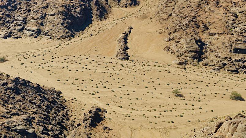 A travers les hublots du Cessna (le modèle 210 N, cinq passagers maximum), le sol s’est dénudé et se craquelle par endroits comme un vieux parchemin. Plus nous volons vers le nord-ouest, plus l’influence du Namib, l’un des plus vieux déserts du monde (80 millions d’années), se fait sentir. La terre a pris une teinte beige orangé qui tranche avec le bleu du ciel. Une heure plus tôt, à l’aéroport de Windhoek, dans le petit salon que Wilderness Safaris réserve à ses voyageurs, une hôtesse avait annoncé la couleur en répondant à la sempiternelle question du chasseur d’images sur la meilleure place à prendre dans l’avion: «A droite comme à gauche, vous en prendrez plein les yeux!» Avant d’atteindre Hoanib, avait-elle précisé, nous ferons une courte escale sur la piste du Doro Nawas Camp. Impossible, donc, de rater le panorama sur le Brandberg, la «montagne qui brûle» des Damaras, (celle des dieux pour les Hereros), d’autant que l’imposant massif granitique (450 km²), trône du Königstein (le point culminant du pays, 2 574 m), émerge tel un mirage au cœur des plaines arides du Damaraland.